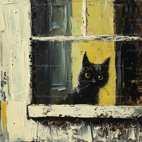ai, midjourney, katze, fenste … kleine schwarze katze am fens